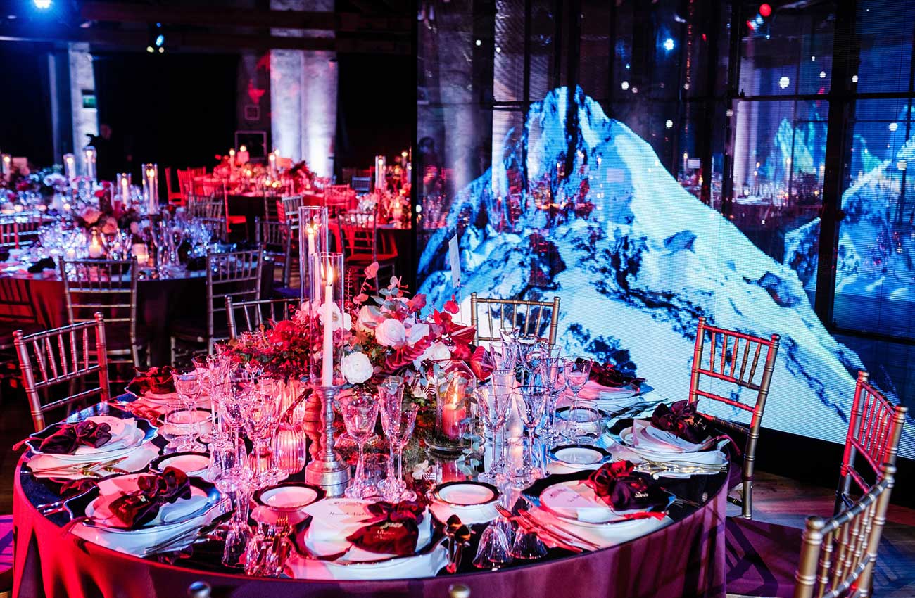 A video mapping on the location's facade welcomed guests who proceeded inside through walls draped up to the ceiling, an immersive mirrored room, to arrive at the main room set up with memories of the best travels, as in Jules Verne's adventures.