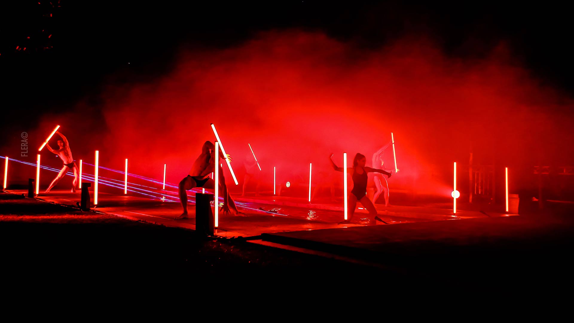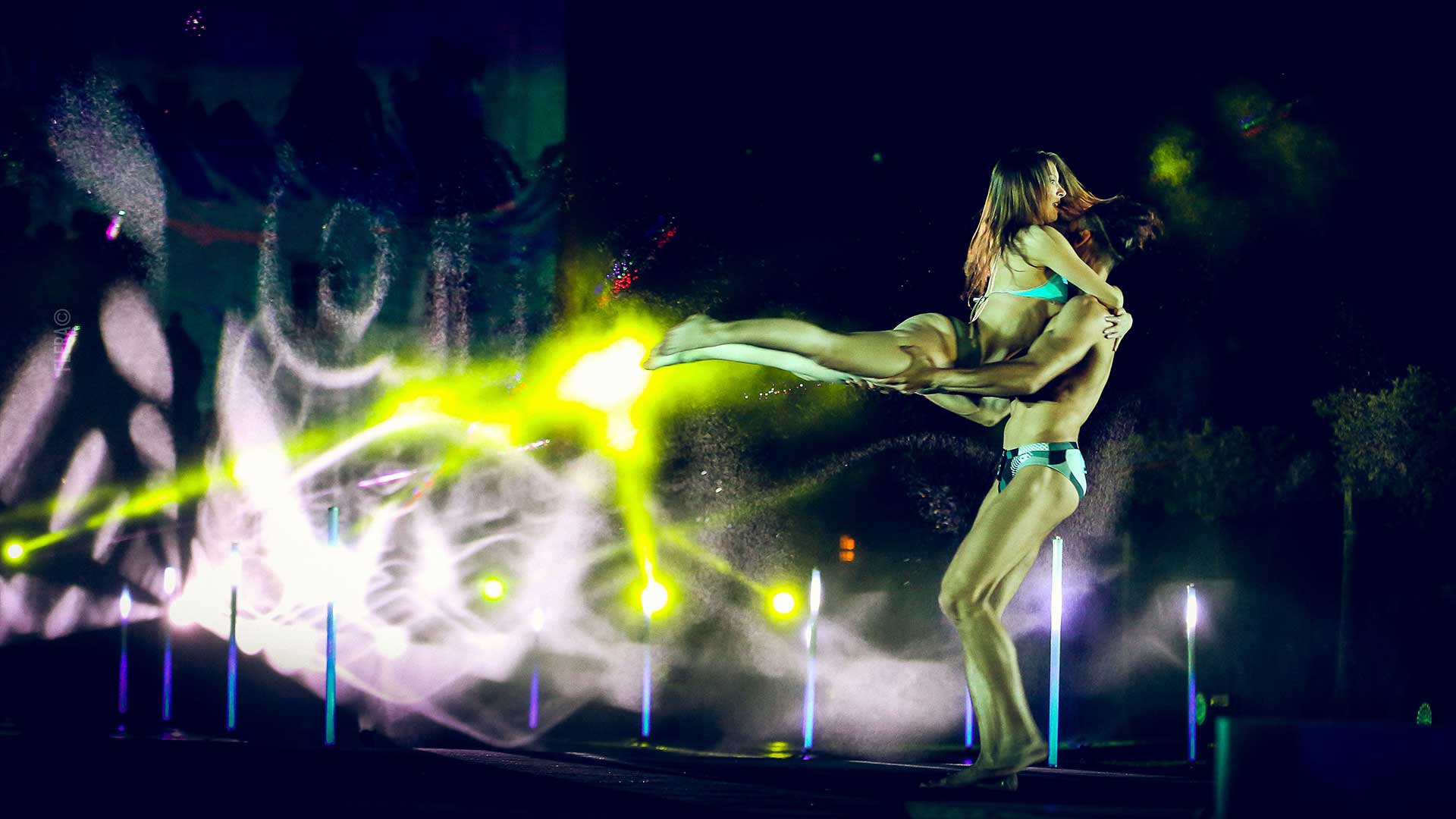 Una location storica come i Giardini della Zisa è stata teatro di un grande spettacolo, dove la presenza dell’acqua ha reso l’ambientazione più incantevole che mai. Una fontana sviluppata su più livelli ci ha consentito di generare pattern kaleidoscopici e video proiezioni sull’acqua, mentre particelle nebulizzate hanno ricreato l'effetto bagnato sui costumi e sui corpi dei danzatori.