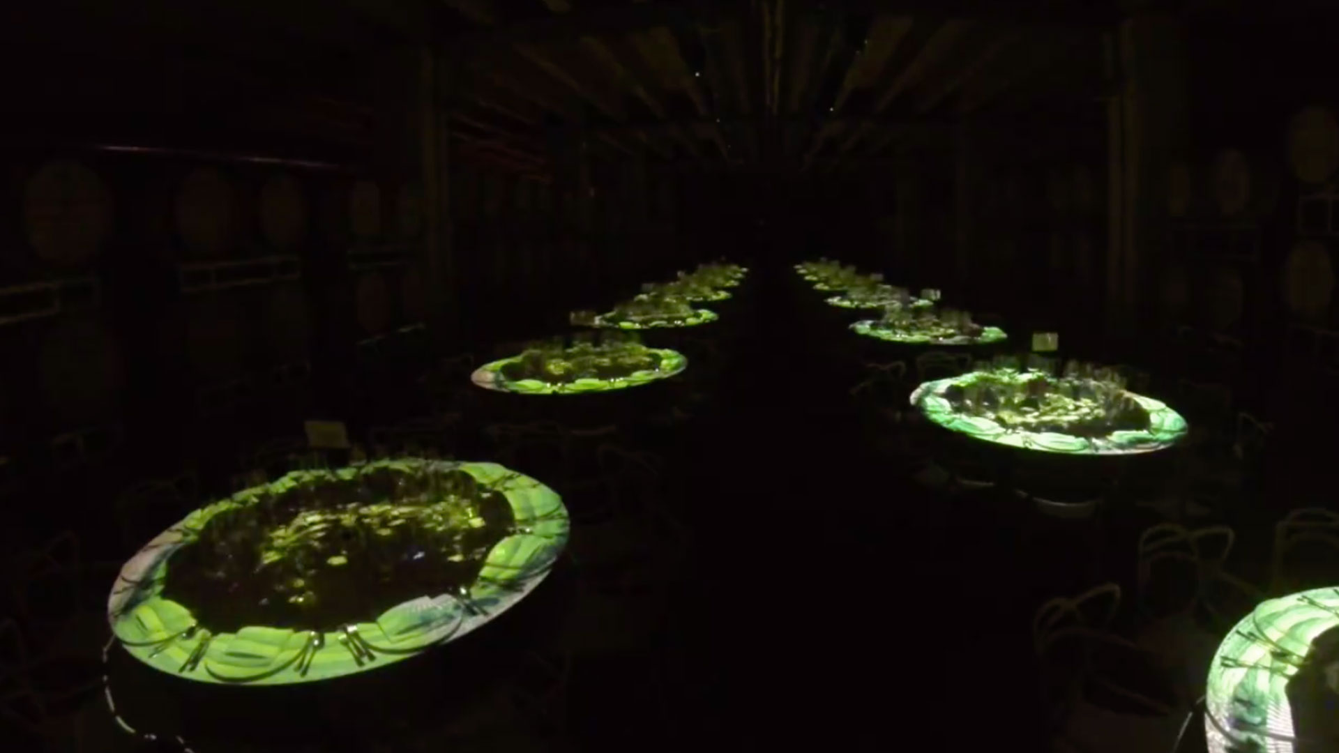 Improvvisamente tutti i 19 tavoli allestiti per la cena si sono animati all’unisono, trasformandosi in vere e proprie botti di vino. L’esperienza ha consentito agli ospiti di immergersi virtualmente per vivere in prima persona l’inizio del viaggio tra incantevoli distese di vigneti, grappoli d’uva, bollicine danzanti ed un particolare labirinto, tratto distintivo della nuova etichetta del marchio Pasqua.